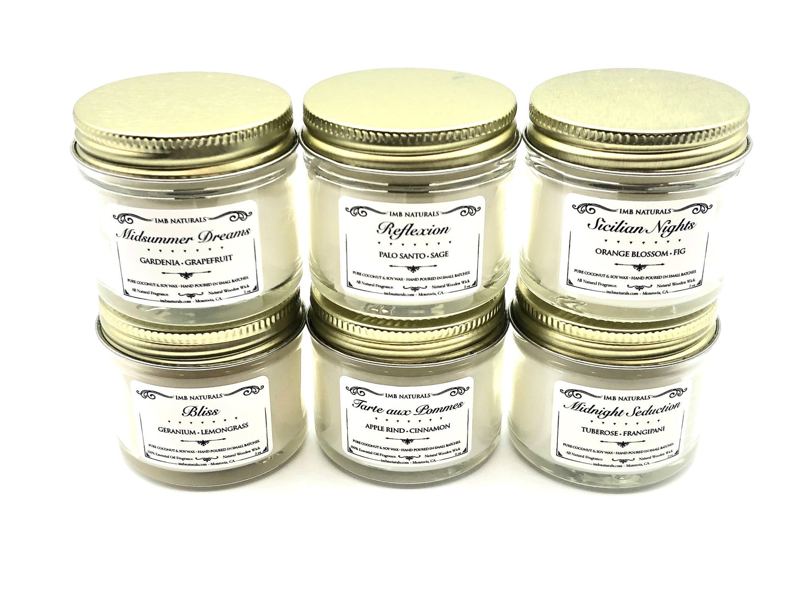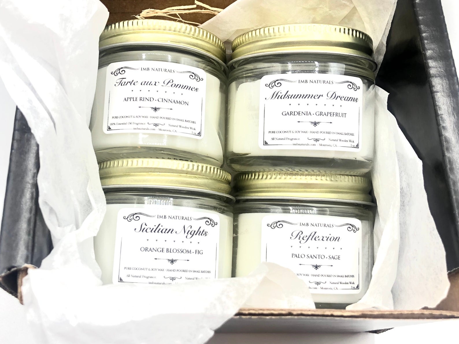 Choose from a set of 3, 4, 5 or 6. Please let me know your scent choices in your order notes. Great way to try our candles before purchasing a larger one! These candles make the perfect gift, and are beautifully wrapped in an elegant black box with biodegradable straw and tissue paper. Will happily include a gift note if desired.